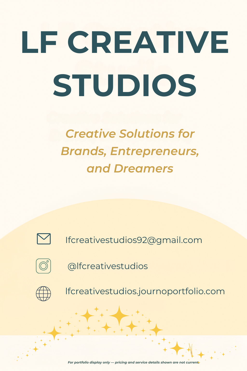 • Reflects the LF Creative Studios brand aesthetic of teal, gold, and warm neutrals